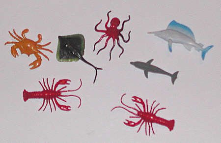 These next four pictures are of a $2 set sold in Target, under the name "Double Dippin Fun." They bag set is simply called "19 Sea Creatures" |