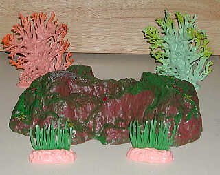 Scenery packed with the Ocean Life set included grasslike plants (foreground), painted terrain feature with small starfish, and coral (back). |