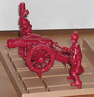 Gun on renaissance mounting and two crewmen. |