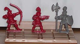 Red archer,crossbowman, grey soldier |