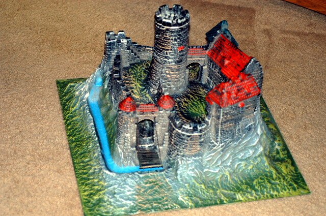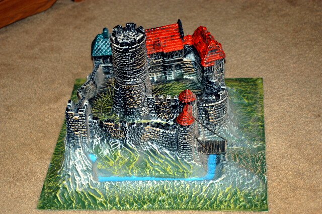 Side view shows the drawbridge and outer wall. This model is based on German style castles. |