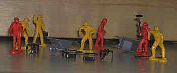 The wheelbarrows were too short for the men to hold properly, and the jachkammer was too long for the figure to stand while holding it. These figures are about 1 /5/8" tall, and could be used as scenery on an O Gauge railroad layout. |