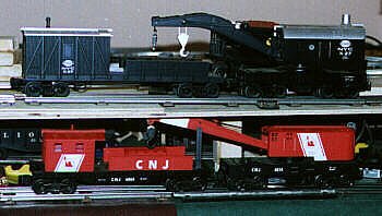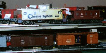 Compare scale caboose on left, with classic Lionel caboose. Lionel caboose is actually O27 (1/64 over O). |