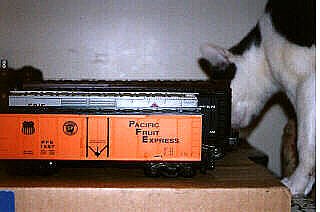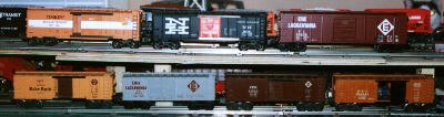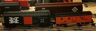 Two 6400s and Railking 50' compared to line of Classic O27 boxcars. On a small pike, it makes a big difference. |