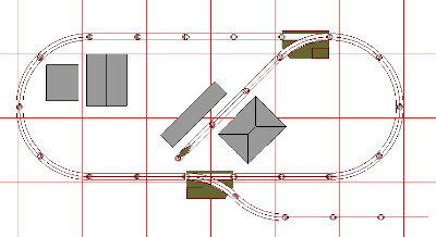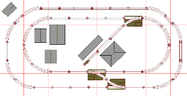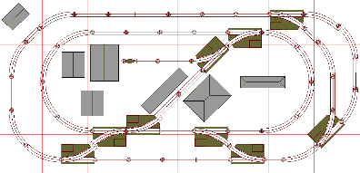 Starting with a basic oval of track,you can grow this layout a piece at a time. We have shown some of the trackside buildings in place. No matter how we expand, the basic track plan and scenery remain in the same place. Once you get rolling, you can add one or two switches and more track to gradually get to the finished layout.