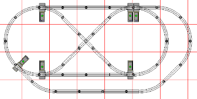 We extend the layout to 4' by 10' and add 4 more switches, giving us more room to run and more sidings. |