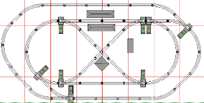 We went one better, adding another 4' by 4' to the lower right. Extra track and 4 switches make a reverse loops and sidings.
