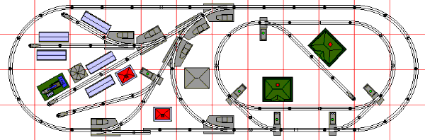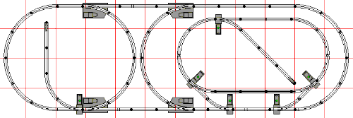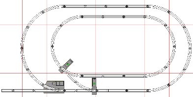 Two switches in the lower right make a two-way connection to the inner loop. If we add a switch inside the loop, we get a siding for our operating accessories. |