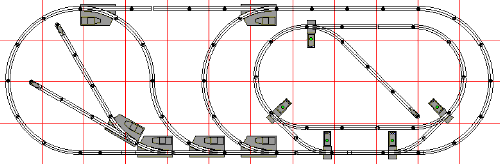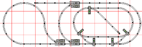 One switch added to the top left allows more continuous running. Two switches at the bottom add sidings.