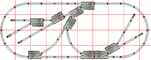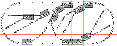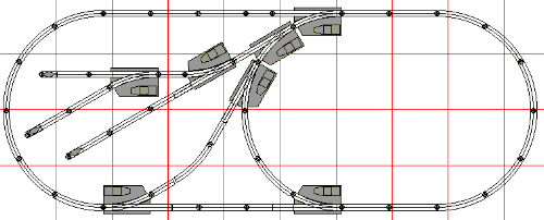 Variation 1: In this variation, we extend the layout two foot to the right. Add another pair of switches to extend the oval, making a passing siding. |