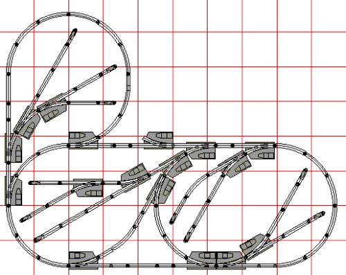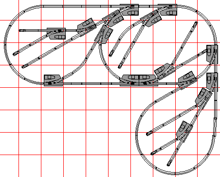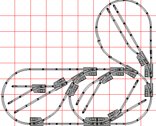 One more switch puts a siding inside the loop. You can add another to make more sidings alongside it. |