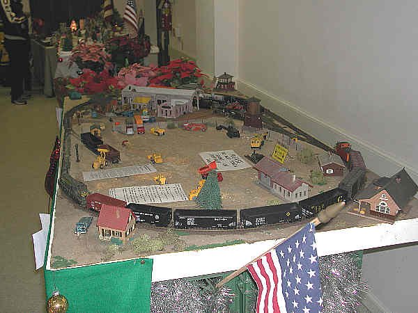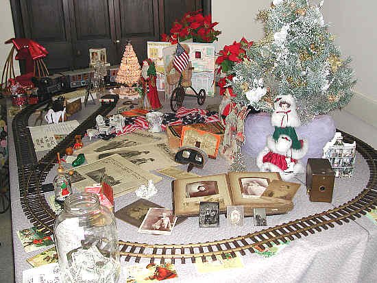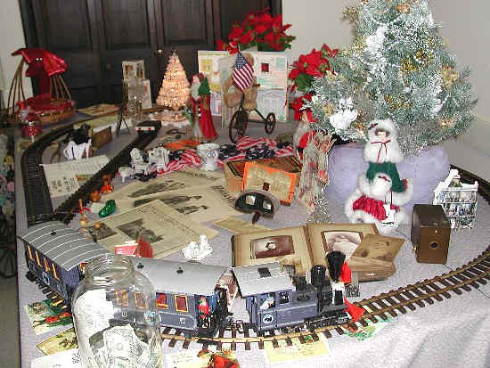 The G Gauge pike is by Gary's mom, and it provides a most appealing backdrop to displaying Ocean Grove memorabilia. Many items which Mrs. Crawford displayed were over 100 years old, including a stereopticon and old sepia-tone photographs The choice of train was just right to accompany such interesting items.