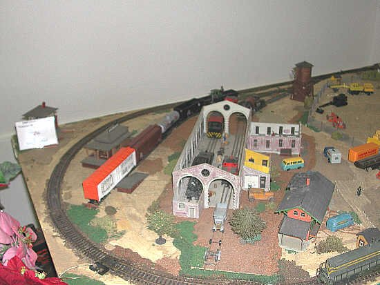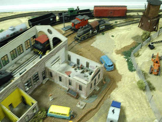 Gary Crawford, a member of the Pine Creek Railway, has three layouts for these shows. His HO and O27 pikes are built on doors, and just the right size for transport to the show. Gary's HO pike is intriguing, since it shows many details based on his vast experience with real narrow-gauge trains at the Pine Creek RR. Especially notable is the loco shop.