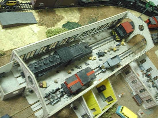 No roof? The roof was left off so people can see what the inside of a locomotive show is like. That shop was made many years ago, by the way. |