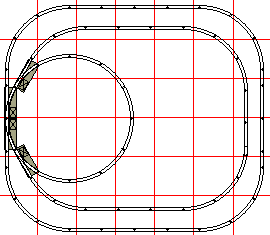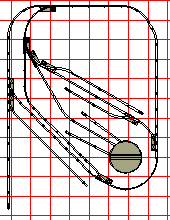 This is inspired by an old Marx layout. The curving track provides excellent action, and ought to appeal to those who like rugged scenery. Size is 7' by 6' |