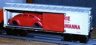 The Erie-Lackawanna auto boxcar by K - Line was originally a Seaboard two-door boxcar with wood load by Marx. |
