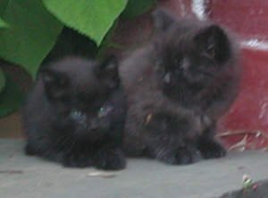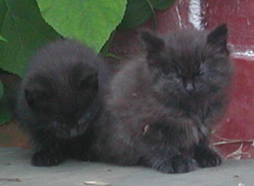 Velvet gave us a surprise this year. She had two kittens, whom we had named (tentatively) Phoebe and Chessie. At six weeks old, they prefered to inhabit our garden railroad. Phoebe and Chessie were playful, amusing kittens. Phoebe was shy, while Chessie was quite adventurous and outgoing. (Chessie is the longer-haired cat).