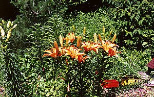 Closer view of the area in full bloom. Brickwell is obscured by plants. |