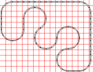This layout is nice if you have "U" shaped landscaping in part of the yard. To widen, just add straights to front and back at the arrow. |