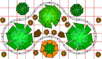 All of these layouts are based on the first layout on this page. They will fit a small garden nicely, and all afford you more creativity in your selection of plants and general landscaping. As with the first set, they are based on a 4' diameter curve. You can easily "up" that to 5', if you have just a little more room.