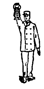 TRAIN HAS PARTED! This tells the trainmen that cars have come loose. Swing up and down in a circle at fill arm's length when the train is running. |