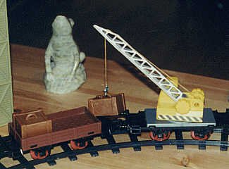 Here are the crane car and low-side car. The design of the low-side car is similar to the German flat car (with containers) in our TT Scale Section. |