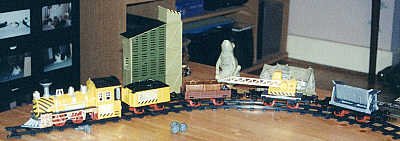 Here is the train, complete wit ha small coal elevator. (Frog and house in background are table decorations, not part of the set) |
