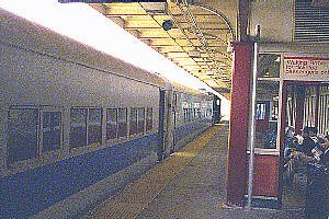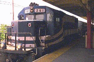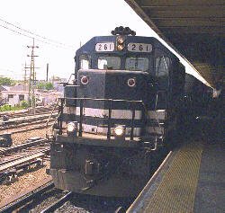 The train pictured here was the local to Greenport, which is the last stop on the Northeastern tip of Long Island. Seeing as a popular model called "The Greenport Scoot" was issued this year, we felt lucky to catch a genuine Greenport-bound train during our photo shoot at Jamaica Station. Unlike the model by K-line, which has an Alco FA at one end and an MP 15 at the other, ours sported a set of GPs.