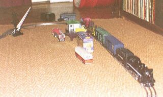 O Gauge was really meant ot be run for fun.  The hi-railtrack is intended to be erected quickly and endure frequenty handling.  These are trains you run anywhere.  You don't need a permanent layout  (save that for N scale!).  You just need trains, a clear floor and an outlet to plug in your transformer.  Here's a simple, small sample of bare-bones train running.  Another page of this is coming soon, with lots more stuff