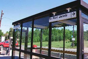 Anyway, Otisville has been the family's point of debarkation for years. The routine is to have a relastive meet us at the station and drive us over the mountain to the house. Otisville actually has something of a station now. These photos show it, along with the infamous portal that should have gotten me to Port Jervis but instead was a one-way ride to Shohola.