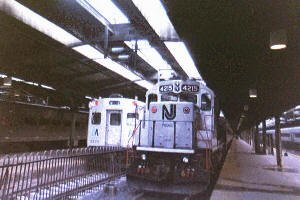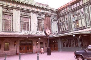 One of the oldest railroad terminal's in use today, Lackawanna Terminal in Hoboken, NJ, is now the starting point for New Jersey Transit. The station has been undergoing restoration. Currently, the waiting room is due for repairs. I have been going to this station since I was a small child. My first journeys were on the old Lackawanna Railroad's Phoebe Snow to Scranton, PA, and the Erie Railroad's local to Port Jervis, NY. In those days, the locomotives were a stunning grey with maroon and gold trim (pictured in our Locomotive Shop). Today, the silver engines of NJ Transit and the blue & silver locomotives of Metro North call Lackawanna Terminal home.