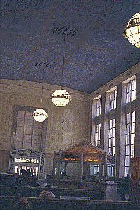 Art Deco and Streamlined come together to make Newark's Penn Station a masterpiece. The marbled walls of the waiting room sport logos dedicated to the transport of their times and earlier. A stylized Viking ship, stylized steam and electric engines and an old propeller airplane are among icons in this bright temple of transportation. NJ Transit has restored the station to some of its former glory.