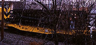 Flat cars are the most common cars for Staten Island Rapid Transit's Maintenance of Way trains. We've often seen them carrying loads of sectional track. Here are a few detail shots of these flat cars in action.