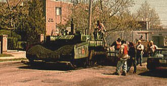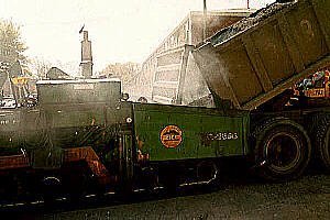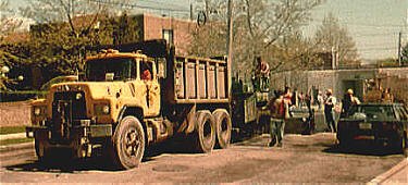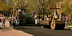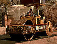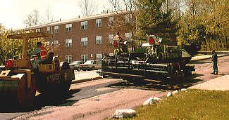 The roller helps flatten the hot asphalt to make a smooth roadway. |