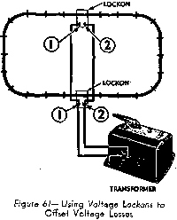 In operating large layouts it is frequently found that the train slows down when running on the portion of track farthest from the Lockon. This is due to voltage losses in the track itself and can be remedied by attaching additional Lockons at the points on the track where the train slows down. See Figure 61. Be careful to connect the No. 1 and No. 2 clips of the auxiliary Lockons to similarly numbered clips of the Lockon connected to the transformer or else a short circuit will result. Ordinary lamp cord is well suited to these connections as well as for "feeders" described above.