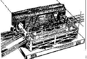The Tie Unloading Car is equipped with its own motor which enables it to run on the track as an independent track repair unit. A coupler in the rear enables it to pull another car, which can be used to carry extra track ties, etc. The ties, which are furnished with the car, are loaded into the rear compartment of the car by hand. As the car runs along the track it will eject track ties, one at a time, along the railroad right-of-way The unloading action is started and stopped by means of a pair of track-side trips, which are clamped to the track, as illustrated below. The lever on the track trip can be used to move it out of the way, if desired.