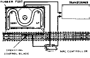 This action takes place when car passes over a cam plate which is placed along side of a straight section of track(or on the inside of a straight and curved section). The illustration above demonstrates the how to install the "low-bridge" signal and cam plate. The car operates efficiently in either direction.