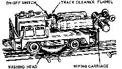 Caution: For washing the rails use only the new noninflammable, non-toxic track cleaning fluid. The large surface of the washing head sponge greatly increases the flammability of any inflammable fluid. For that reason no inflammable cleaner should be used.