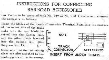 Instruction Plate #3 shows hookup to transformers where accessories and track power share a common "ground" terminal. Some older Lionel and American Flyer transformers have this feature.