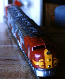 The most common road names among Marx locomotives are the New York Central, Santa Fe, Union Pacific. Western Pacific and Southern Pacific. In freights you will find the same names, plus Baltimore & Ohio, Rock Island, Penn Central and Erie. One non-road is Allstate, a trademark of Sears used in making sets for the catalogue vendor.