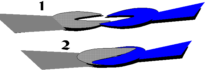 Tilt couplers dovetail into one another. Pressure from a simple spring and a notch on the end (notch not illustrated here) hold them together. |
