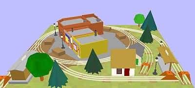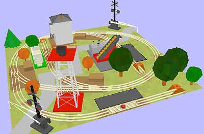 Circle with two long spurs and one short siding. In this little space we have an urban "center" and the rail yard at the edge of town.. This would likely work lie a point-to-point railway for most rail operations. (4) Lionel® O27 single straight (8) Lionel® O27 O-27 curve 45° (1) Lionel® O27 O-27 lefthand turnout (2) Lionel® O27 O-27 half curve 22.5° (3) Lionel® O27 track bumper (2) Lionel® O27 O-27 righthand turnout (1) Unknown track section (1) Lionel® O27 half straight |