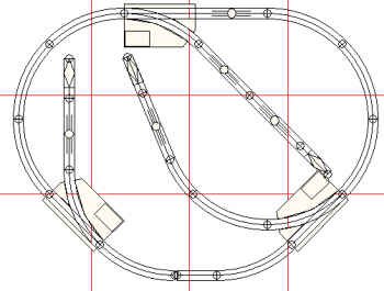 A simple extended loop with one siding. The oval is made wider by cutting 4" straights. (8) Lionel® O27 O-27 curve 45° (1) Lionel® O27 track bumper (3) Lionel® O27 single straight (2) Lionel® O27 O-27 righthand turnout (2) Lionel® O27 half straight (1) Lionel® O27 O-27 lefthand turnout (2) Unknown track section (2) Lionel® O27 cut straight |