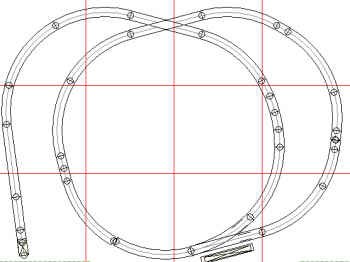 A confusing point-to-point system! There is a short single line bisecting the complex railway with intersecting lines. It would make an interesting trolley pike, or it could be a freight shuttle. Such a railway could even be an industrial or mining pike within an industrial area, serving various facilities. This layout has potential for expansion. (1) Atlas 6053 5.5 inch straight (4) Atlas 6052 1.75 inch straight (5) Atlas 6051 4.50 inch straight (6) Atlas 6050 10.0 inch straight (1) Atlas (6075) lefthand O-36 turnout (1) Atlas (6076) righthand O-36 turnout (1) Atlas 6083 60° cross (2) Atlas 6043 O27 45° curve (6) Atlas 6040 snap-on bumper (3) Atlas 6044 O27 22.5° curve (1) Atlas 6080 90° cross (2) Atlas 6068 O36 7.5° curve |