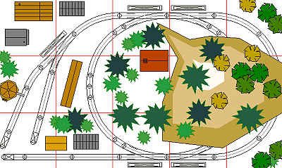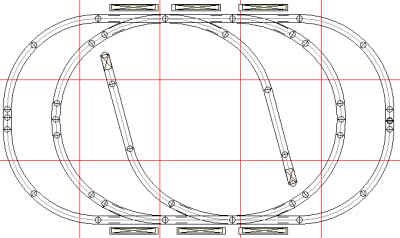 This track plan is great a small mining or logging railroad. Though not shown, there are tunnels through the mountain. Of course, you could also use this for a dockside freight or commuter shuttle / trolley pike. (2) Atlas (6076) righthand O-36 turnout (3) Atlas (6075) lefthand O-36 turnout (9) Atlas 6043 O27 45° curve (1) Atlas 6015 1.25 in straight (3) Atlas 6052 1.75 inch straight (8) Atlas 6068 O36 7.5° curve (4) Atlas 6050 10.0 inch straight (1) Atlas 6053 5.5 inch straight (1) Atlas 6051 4.50 inch straight (3) Atlas 6040 snap-on bumper (1) Atlas 6044 O27 22.5° curve |