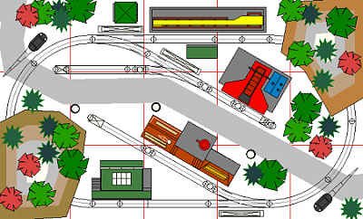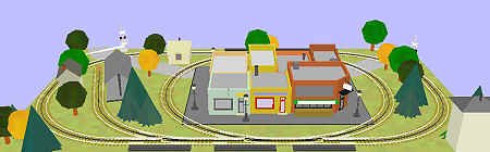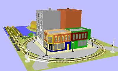 Here is a nice little railway that can accommodate operating accessories, freight and passenger systems. Our example has scenery for a small freight and commuter / trolley operation. (12) Atlas 6043 O27 45° curve (4) Atlas 6050 10.0 inch straight (3) Atlas (6075) lefthand O-36 turnout (1) Atlas (6076) righthand O-36 turnout (4) Atlas 6068 O36 7.5° curve (5) Atlas 6052 1.75 inch straight (3) Atlas 6015 1.25 in straight (2) Atlas 6040 snap-on bumper |