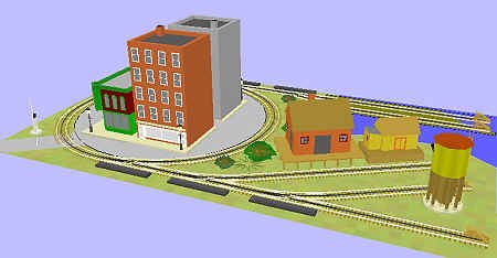 Here is a track plan that is excellent for freight shunting. It can work as a point-to-point system. Our example is arranged as a dockside industrial railway, with an urban area within the loop. (1) Atlas (6076) righthand O-36 turnout (6) Atlas 6043 O27 45° curve (1) Atlas 6015 1.25 in straight (1) Atlas 6052 1.75 inch straight (3) Atlas (6075) lefthand O-36 turnout (4) Atlas 6068 O36 7.5° curve (7) Atlas 6050 10.0 inch straight (5) Atlas 6040 snap-on bumper (1) Atlas 6071 O54 right-hand turnout (2) Atlas 6053 5.5 inch straight (3) Atlas 6051 4.50 inch straight (1) Atlas 6044 O27 22.5° curve |