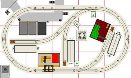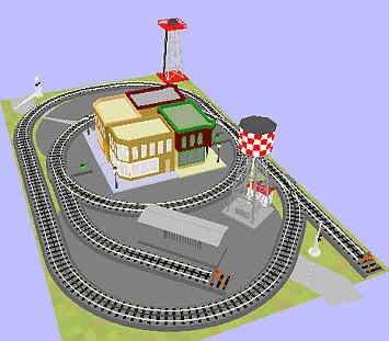 With three sidings in a loop, this little railway can be applied to many themes. It is great for trackside accessories, and also for scenery. Our example includes both. (5) MTH 40-1001 10 inch straight (9) MTH 40-1002 O-31 curve (2) MTH 40-1017 4.25 in straight (2) MTH 40-1018 3.5 in straight (3) MTH 40-1005 O31 lefthand switch (3) MTH 40-1024 track bumper (1) MTH 40-1022 O-31 half curve |