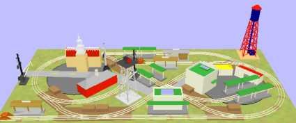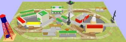 The layouts depicted here use standard O27 tubular track and common accessories. They fit a very small area, and though action is cramped, they are an alternative for those with small spaces. Note that on some layouts, you may need to cut track and "fudge" things to make them fit. 3' by 5' is very cramped space for all but the smallest scales. Accessories used are a variety of products: Plasticville, MTH and Lionel.