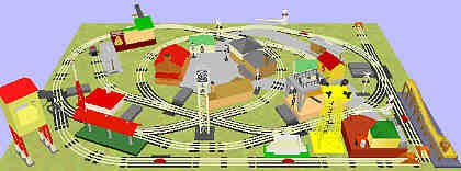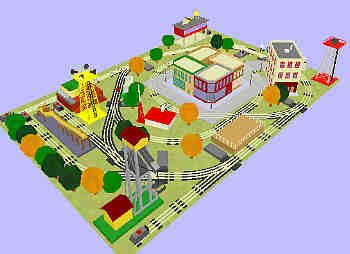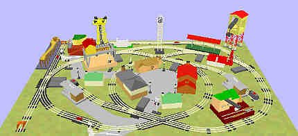Another crossover that offers you many variations in how you run your trains. It accommodates the widest variety of operations, too. (12) Lionel® O O-31 curve 45° (1) Lionel® O 45° cross (11) Lionel® O single straight (2) Lionel® O O-31 half curve 22.5° (4) Lionel® O half straight (3) Lionel® O O-31modern lefthand turnout (4) Lionel® O O-31 modern righthand turnout (1) Lionel® O custom cut straight (5) Lionel® #260 track bumper (1) Lionel® O uncoupling track (1) Lionel® 9224 horse car platform (1) Lionel® 22997 #2300 oil drum loader (1) Lionel® 14084 #419 heliport (1) Lionel® 49807 #752 seaboard coaler (1) Lionel® 32996 #362 barrel loader (1) Lionel® 9220 milk car platfrom (1) Plasticville 1618 TV transmitter station (1) MTH 30-9012 Corner Drug store (1) MTH 30-9035 Jewelry store (1) MTH 30-9056 Auto Parts store (1) MTH 30-9085 Train store (1) MTH 30-9096 city factory (6) MTH 30-11032 gooseneck light (1) MTH 30-11012 operating crossing gate w/signal (2) MTH 30-11014 hiway crossing signal w/sound (1) MTH 30-9033 #494 rotary beacon (1) MTH 30-9025 #395 floodlight (yellow) |